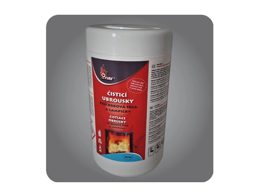 Jde o alkalický čisticí prostředek - odmašťovač pro odstranění nečistot z krbových skel a skleněných materiálů. Ubrousky jsou praktické, na rozdíl od použití tekutých čističů si nezašpiníte podlahu ani těsnění dvířek. Chemická látka obsažená v ubrouscích je šetrná k čištěnému povrchu skel i k těsnění.
