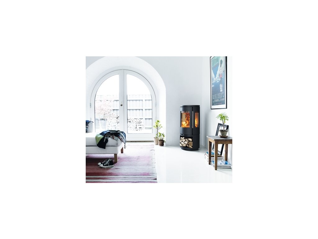 Model Morsø 7443 je k dispozici s prostorem určeným ke skladování dřeva.