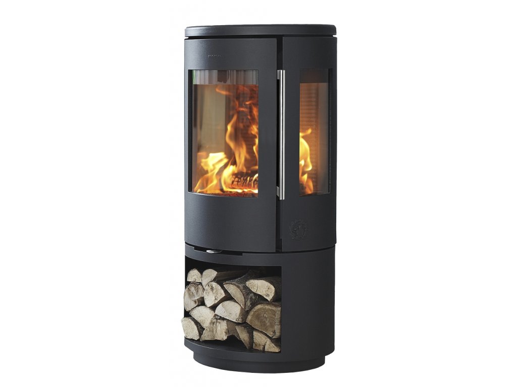 Model Morso 7493 je k dispozici s prostorem určeným ke skladování dřeva.