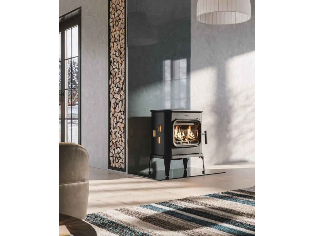 Designová litinová krbová kamna Nordfalm Sora s dvojím spalováním.