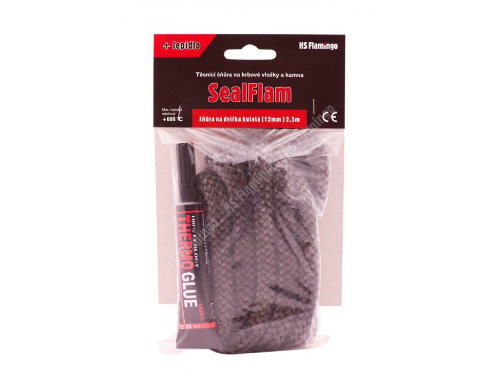 Těsnící šňůra k těsnění krbových dvířek, mřížek nebo kouřovodů. Šňůra je kulatá o průměru 12 mm v balení o délce 2,5 m + lepidlo Thermo Glue k lepení těsnění.